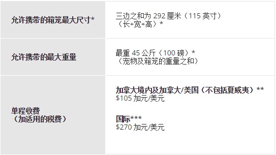 欢迎您携带您的猫或小型犬上飞机,条件是您的猫或小型犬能在您前方座位下的宠物箱笼中站立,转身和躺下。